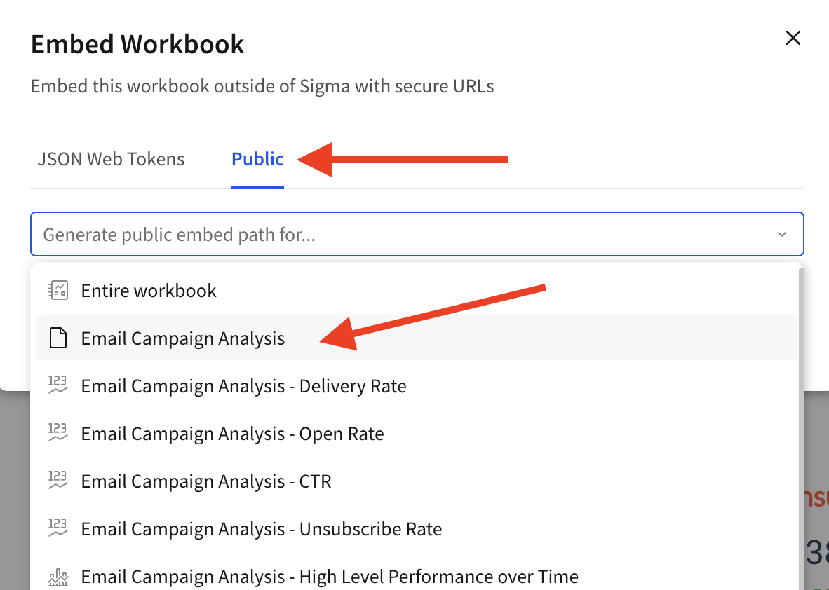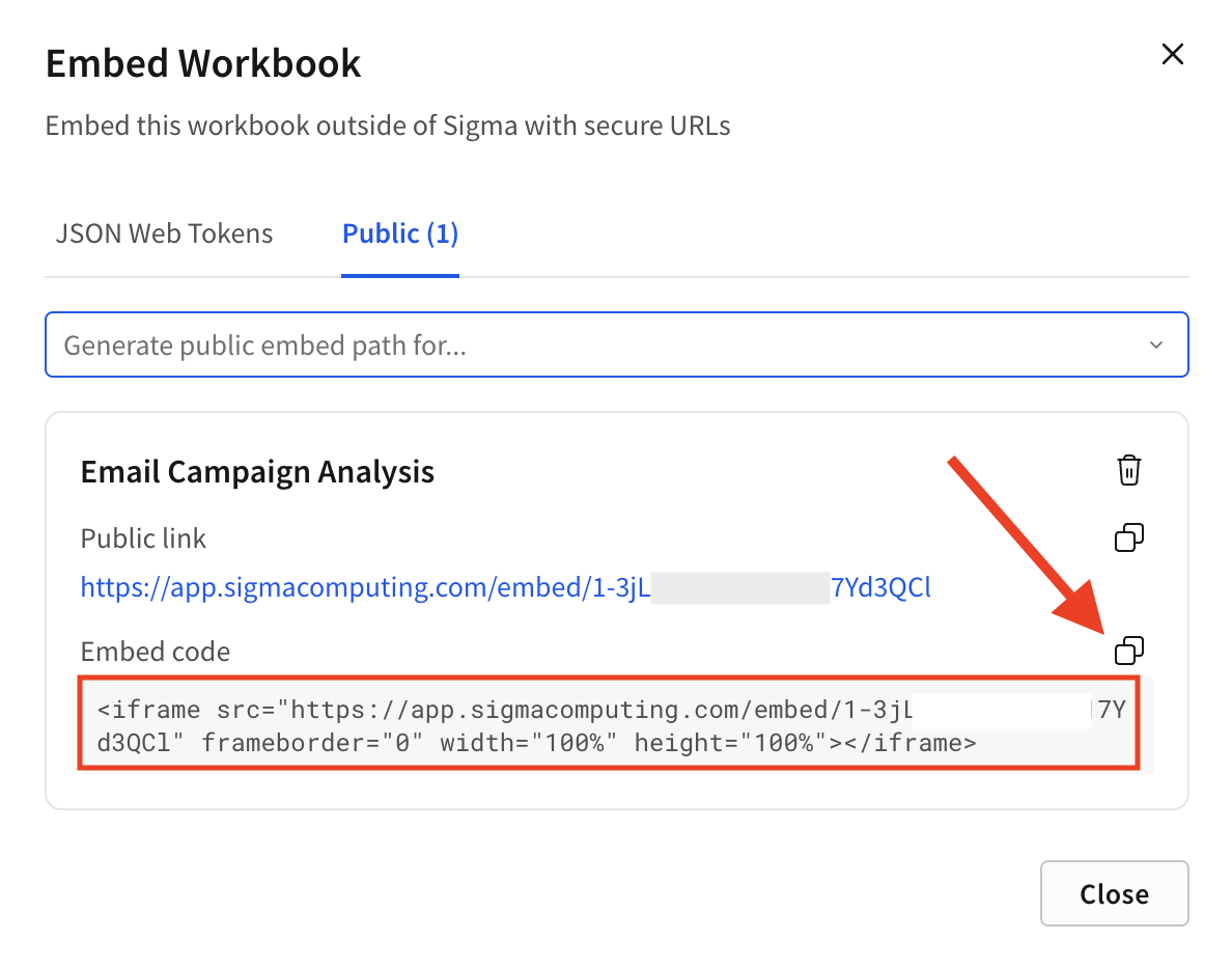 See Sigma Computing Documentation for detailed instructions on generating public embeds.